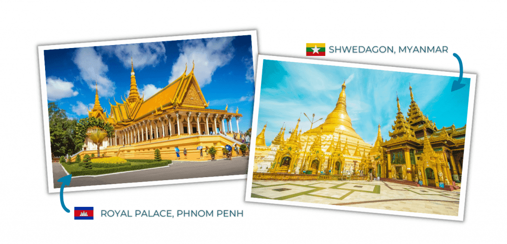 Shwedagon Pagoda or The Golden Place in Myanmar bear a resemblance to The Royal Palace in Phnom Penh.