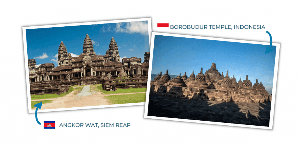 You’ll get the same feeling of visiting Borobudur Temple (the world’s largest Buddhist temple), when you visit the Angkor Wat in Siem Reap, a UNESCO Heritage and the largest religious monument in the world.