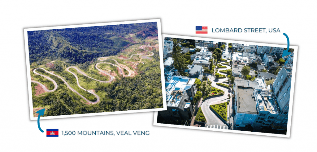 A specific road in Cambodia can probably steal the title of “the most crooked road in the world,” which belongs to the Lombard Street in San Francisco, USA.